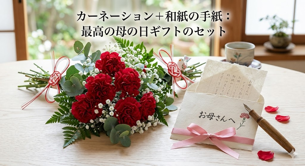 カーネーションや好みのお花に和紙の手紙を添えると、「見た目の華やかさ」と「気持ちの深さ」が合わさり、完璧な母の日ギフトになります。スイーツや入浴剤などの消えものと組み合わせるのも定番です。何を組み合わせるにしても、手紙があるだけで贈り物全体の印象が変わります。